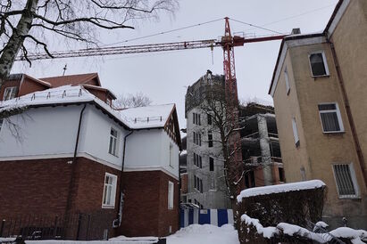 Точечную застройку на проспекте Победы, 8, ведет сестра председателя Заксобрания Андрея Кропоткина, на участке в 800 кв. м. возводится пятиэтажный дом. Местные жители обратили внимание, что башенный кран на стройке может угрожать жилому дому и музыкальной школе, расположенной по соседству. В управлении Ростехнадзора по Калининградской области сообщили, что нарушений нет.