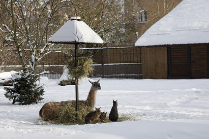 В секторе копытных животных все «жильцы» самостоятельные: сами решают, когда гулять, когда греться. Сена здесь тоже требуется немало.