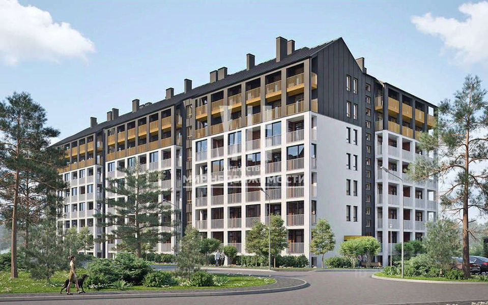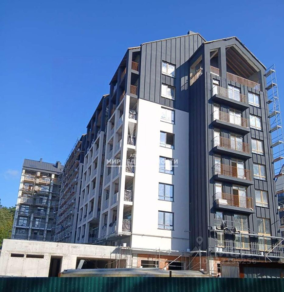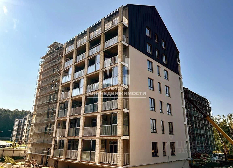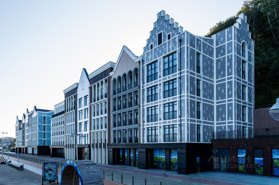 Однокомнатные апартаменты примерно той же площадью — 110,6 м² — предлагаются к покупке на последнем этаже пятиэтажки 2024 года постройки на ул. Верещагина. Комплекс «прославился» тем, что его возвели на месте бывшей одноимённой четырёхзвёздочной гостиницы. Отель «Русь», как известно, был закрыт и после снесён. Разрешение на строительство новой гостиницы на его месте правительство Калининградской области выдало в сентябре 2021 года. Ввести в эксплуатацию здание разрешили в январе 2025-го. На месте снесённого отеля строят также «Русь 2» и планируют построить ещё одну очередь зданий под названием «Русь-3», а на берегу возвести рельсовый фуникулёр. Проект получил одобрение на заседании градостроительного совета.