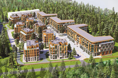 В июле на заседании градсовета застройщик представил альтернативное расположение зданий вдоль ул. Лесной. Речь шла о девяти комплексах апартаментов и трёх гостиницах, одна из которых — со встроенным пансионатом. Фасады зданий выполнены «в деревянном стиле». Большинством голосов комплекс в итоге был одобрен к дальнейшей реализации с учетом выполнения данных рекомендаций. В декабре экспертиза одобрила проектную документацию первого этапа строительства.