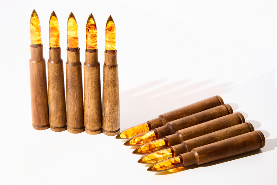 Для производства янтарной пули специалисты применили технологию прессования. Метод позволяет под воздействием давления и температуры соединить отдельные фрагменты самоцвета в единую заготовку. Технологи комбината создали внутри заготовок для пули особый рисунок, комбинируя янтарь различных оттенков и меняя параметры прессования.