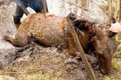 Калининградские поисковики спасли тонущего в болоте жеребенка (фото)
