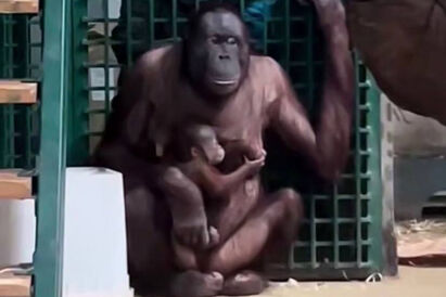 В зоопарке показали, как детёныш орангутана «проходит тренинг» вместе с мамой (видео)