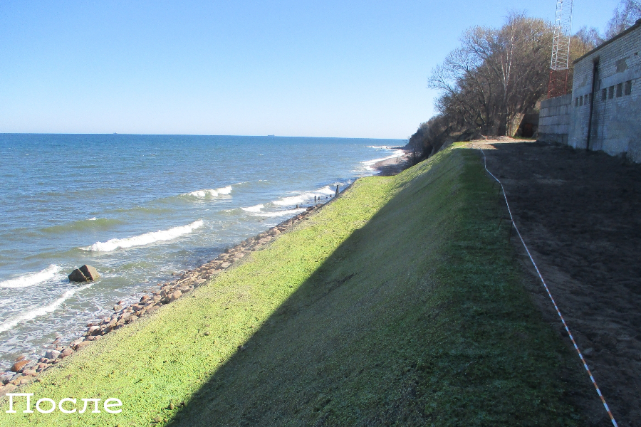 «После проведения БФУ им. Канта аварийно-восстановительных работ под техническим контролем специалистов Балтберегозащиты аварийная ситуация была ликвидирована, а береговой склон частично восстановлен и укреплен берегозащитной конструкцией из каменной наброски с ядром из геобэгов и осуществлен противоэрозионный гидропосев», — сообщили в пресс-службе Балтберегозащиты.