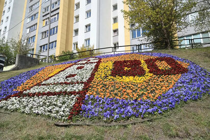 К юбилею области в Калининграде оформляют тематические цветники (фото)